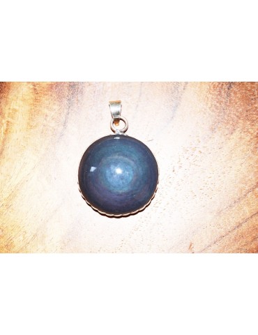 Obsidian Anhänger Manta Huichol eine Seite gefasst in geflochtenem Silber 925