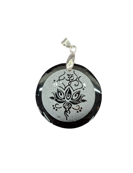 Gravierte Obsidian-Anhänger mit dem Symbol der Lotusblume.