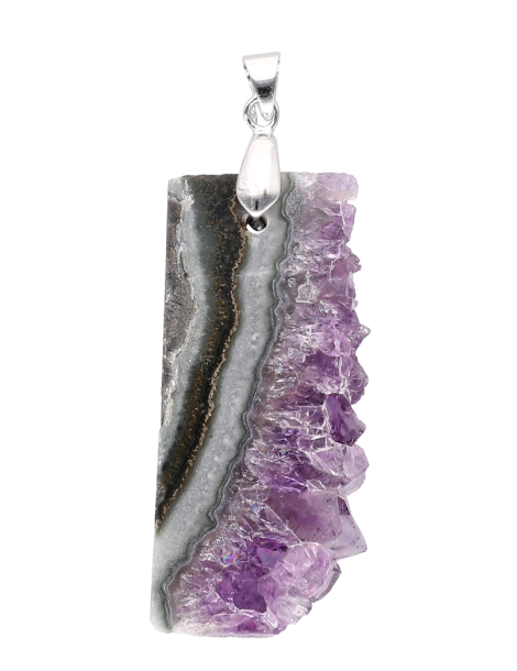 Amethyst - Anhänger mit rohen Kristallscheiben und Metallöse.