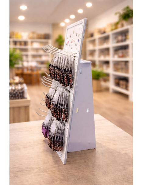 Expositor mural o de mesa que cubre todos los tamaños clásicos "más vendidos" de pulseras: perlas de 4, 6 y 8 mm, pulseras elásticas diámetro estándar - 48 piezas