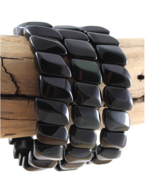 Obsidienne œil céleste - Bracelet de perles plates légèrement bombées en forme de S