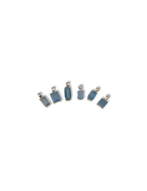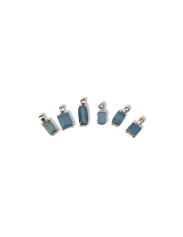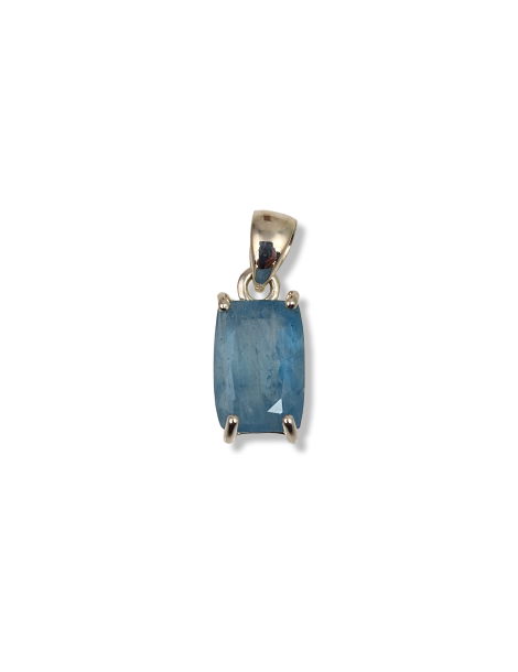 Pendentif en aigue-marine facetté. Serti ongle, argent 925. Bélière large.