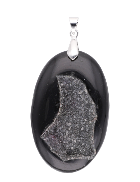 Onyx cristallisée - Pendentif cabochon avec bélière métal