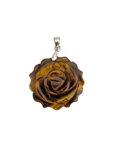 Pendentif obsidienne gravé avec le symbole de la fleur de lotus.