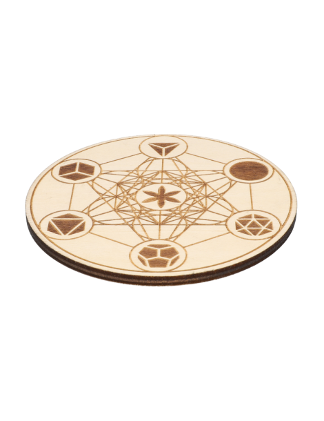 Engraved Wooden Disc Metatron with Platonic Solids