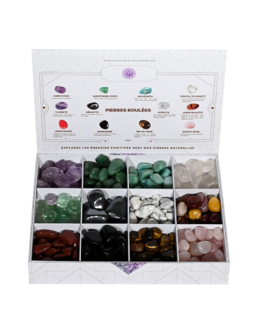 Animal Display - 20 pieces Display containing these 4 animals: turtle, elephant, cat, and owls Mix of 5 stone varieties among: Amethyst, Green Aventurine, Quartz Crystal, Howlite, Tiger's Eye, and Rose Quartz. Material : PVC display Number of pieces : 20 pieces Size : 20x16x20cm 🔗 Link to compatible product restocking