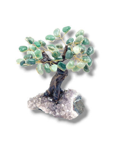Tree foliage in tumbled stones, glued on an amethyst druzy