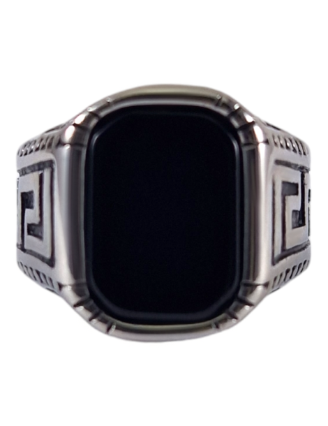 Anello sigillo in acciaio Ossidiana 13