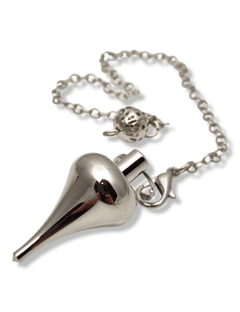 Pendolo classico da radiestesia in metallo a forma di goccia.