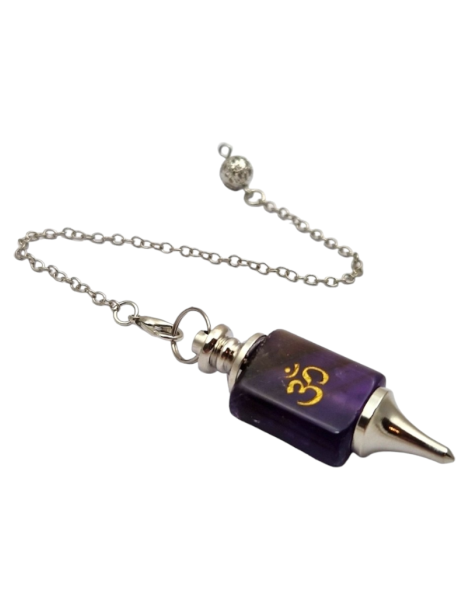 Wichelroede pendel met ruwe steen en een punt van kwarts kristal Kwaliteit A afmeting: 8,5 cm x 2 cm Keuzeopties: aventurijn, tijgeroog, zwarte toermalijn, amethist, rozenkwarts, howliet, bergkristal,