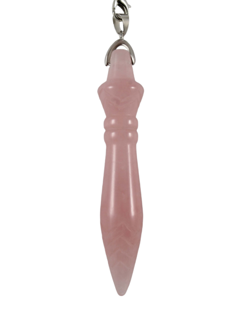 Wichelroede pendel met ruwe steen en een punt van kwarts kristal Kwaliteit A afmeting: 8,5 cm x 2 cm Keuzeopties: aventurijn, tijgeroog, zwarte toermalijn, amethist, rozenkwarts, howliet, bergkristal,