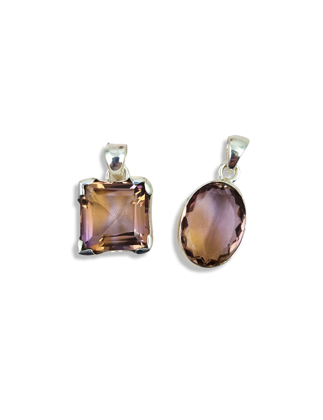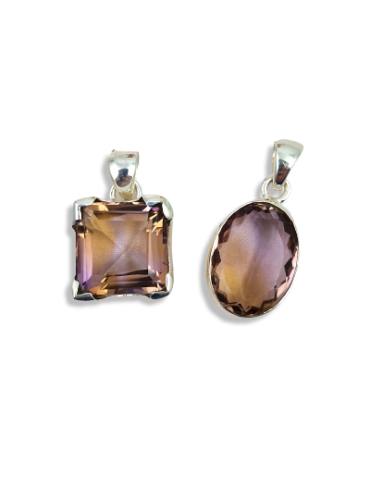 Hanger in ametrien (amethist en citrien) gefacetteerd.