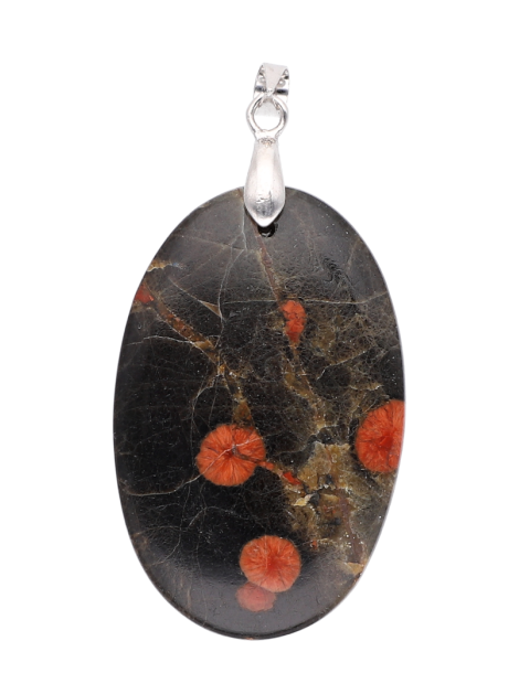 Obsidiaan peanut - Hanger cabochon met metalen hanger.