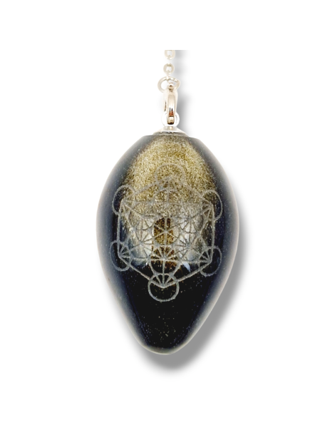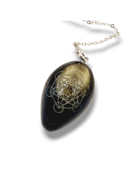 Obsidienne dorée - Pendule œuf gravé symbole Métatron