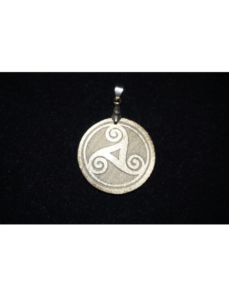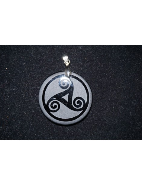 Pendente de obsidiana gravado com o símbolo do Triskèle.